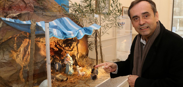 Vous êtes ici :Home»Laïcité»Halte à la déchristianisation juridique forcée des crèches ! Le Petit Jésus croqué par les chats-fourrés ?»slider_creche_menard